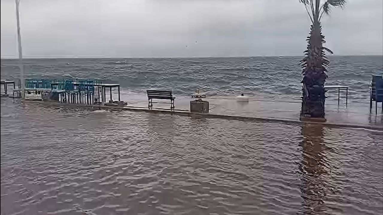 Gemlik ilçesi Kurşunlu Mahallesi’nde sabah saatlerinden itibaren etkili olan fırtına ve kuvvetli yağış, yaşamı olumsuz etkiledi. Kurşunlu Sahili’nde rüzgarın etkisiyle yükselen dalgalar nedeniyle denizle kara birleşti. Yayalar yürüyüş yoluna yaklaşamazken, araçlar kontrollü ilerledi. Sahilde denizle karanın birleştiği anlar, çevredekiler tarafından cep telefonuyla kaydedildi.